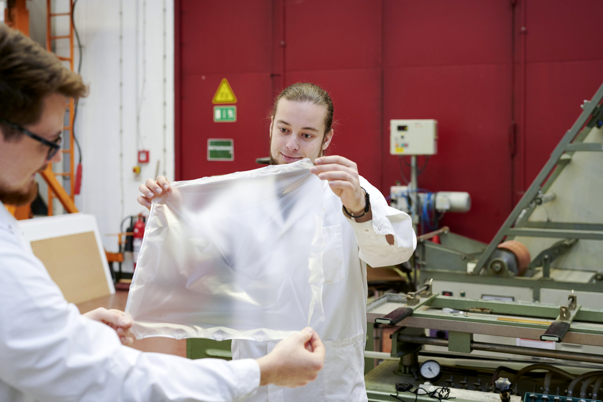 Durch das biaxiale Verstrecken können Polymerfolien im unteren Mikrometerbereich in großem industriellen Maßstab und mit hoher Wirtschaftlichkeit hergestellt werden. Durch den Verstreckprozess können die mechanischen, dielektrischen, optischen Eigenschaften und das Gaspermeationsverhalten entscheidend beeinflusst werden. Hierfür ist die erzeugte Mikrostruktur der Polymerfolie ausschlaggebend. Insbesondere bei teilkristallinen Polyolefinen wie LDPE und PP wird hier die typische Sphärolithstruktur in eine fibrillenartige Morphologie umgewandelt. Durch Zugabe geeigneter Füllstoffe können diese Eigenschaften weiter verbessert werden. Am LSP Erlangen steht neben der Möglichkeit zur Blasfolienherstellung die komplette Prozesskette zur Herstellung von bixial gereckten Flachfolien zur Verfügung.